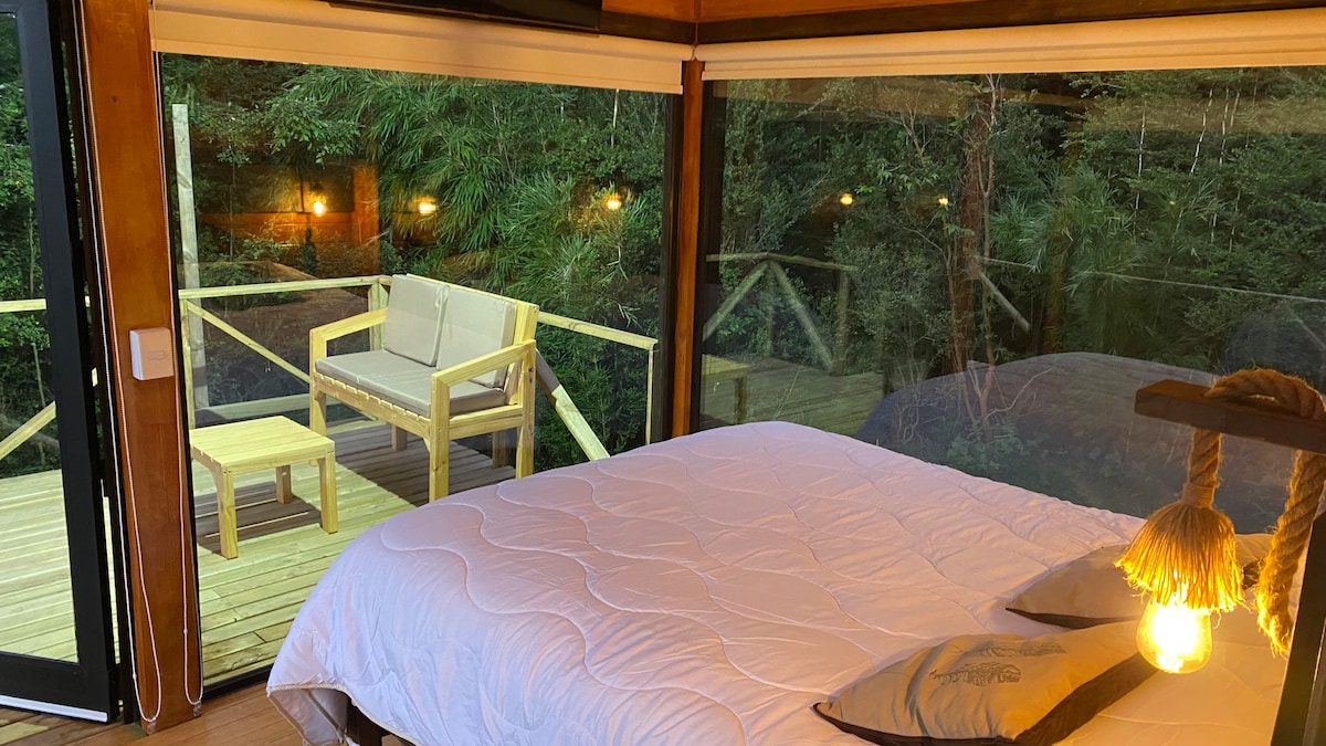 Relájate en un maravilloso palafito escondido en un bosque, disfruta del cielo estrellado mientras descansas en nuestra tinaja privada sólo para ti y tu acompañante. Con el valor de la estadía diaria, está incluído el PRIMER uso de la tinaja, luego tiene COSTO EXTRA($35.000 x uso). NO tiene tv. MÍNIMO 2 NOCHES. La tinaja lo espera lista para su uso a su llegada, después corre por cuenta de los pasajeros su encendido.