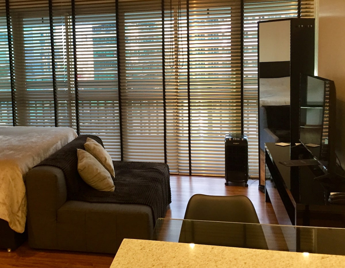 «Ubicació excel·lent: centres comercials i restaurants a prop. Accés fàcil, arribada i sortida ràpides i eficients». • Piscina a la teulada • Gimnàs • Restaurant pintoresc • Llit «queen size» - Matalàs inflable amb bomba elèctrica • Aire condicionat • Wifi • Microones i cuina • Minibar •Tovallola i llençol - Cafetera Nespresso (sense càpsules) Nota: Els MENORS de 18 anys que viatgin sense els pares han de portar una autorització notarial. OBS: PER A NO FUMADORS