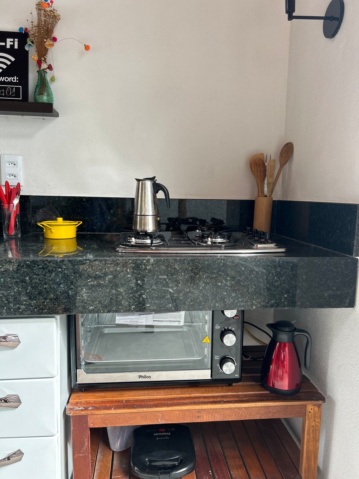 Xalet rústic i encantador. Per a aquells que busquen un lloc tranquil a prop de tot. Disposa d'una cuina completa amb un purificador d'aigua. Un dormitori amb un llit doble, una tauleta de nit, aire condicionat, un penja-robes i un televisor intel·ligent de 32 polzades. Sala d'estar amb 1 sofà llit individual, ventilador portàtil, armari, calaixos i mirall. Bany privat amb aigua calenta. Zona de bugaderia amb rentadora semiautomàtica. Excel·lent wifi per treballar a distància. El jardí és preciós, amb una dutxa fantàstica per refrescar-se.