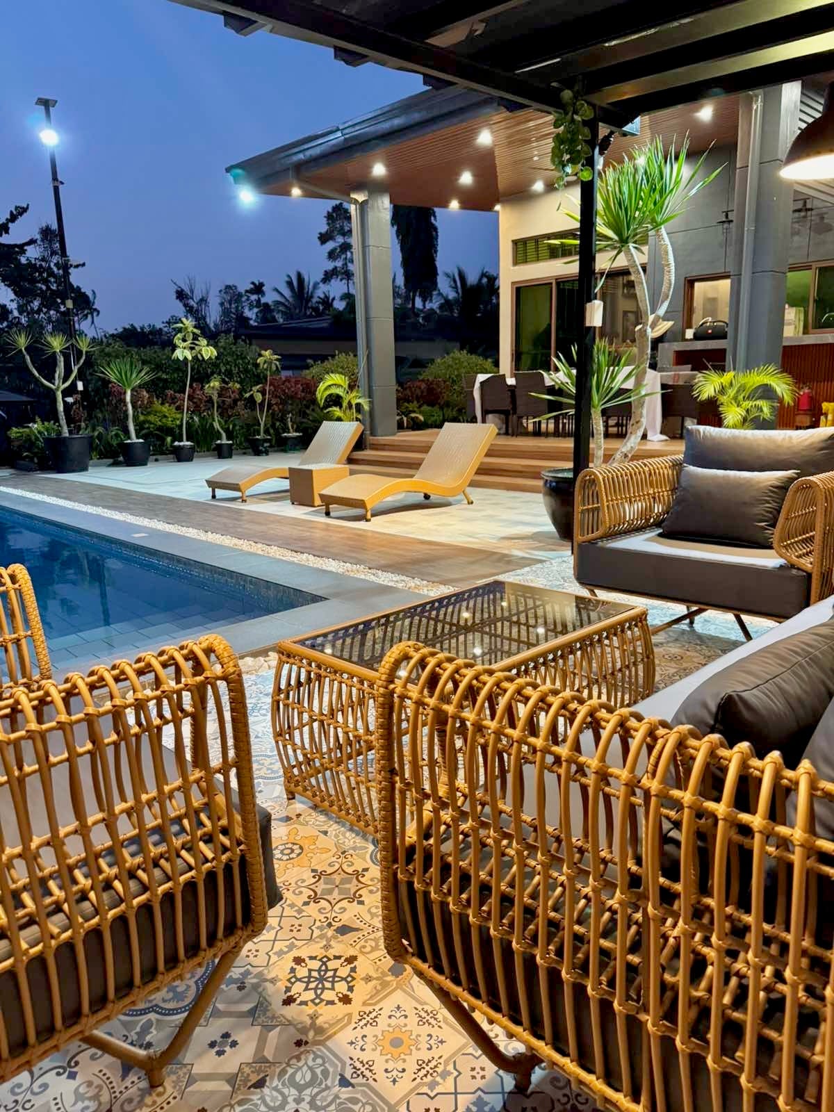 Relaxa't i relaxa't en aquest espai tranquil i elegant. Piscina d'immersió privada INCLOU: Piscina per🏊♂️ a adults (1,2-1,5 metres), 15 metres quadrats Zona 🛜wifi ❄️2 habitacions amb aire condicionat (màxim 4 persones per habitació) per a un total de 8 persones ❄️1 sala d'entreteniment amb aire condicionat i Piano de karaoke🎤 Platinum XL SD WI 21.000 cançons o més Netflix 🎬il·limitat 🎲Jocs de taula 🧊Nevera Dispensador d'☕️🧊aigua 🍽️ Estris i utensilis de cuina ♨️ Microones i torradora ⏲ Fogons️ d'inducció 🍚 Arrossera 🎯Dart Places 🅿️d'aparcament 🍖Graella (no s'inclou el carbó)