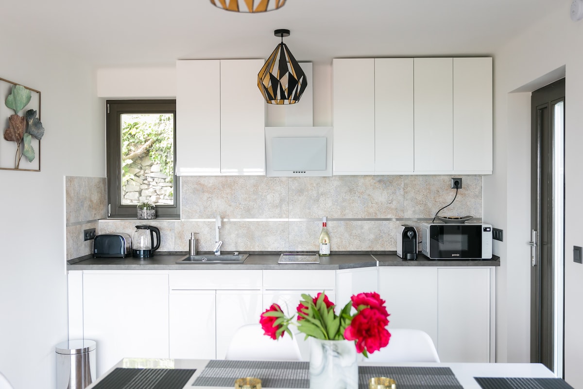 The perfect cosy hideaway! Located in Rezi, MBL Apartments Hévíz Spring features a private garden, a Wood-Fired Hot Tub (extra charge per night), and garden furniture at the edge of the woodland, with beautiful views of the woods and fields. The apartment offers fantastic opportunities for hiking, fishing, swimming, and wine tasting nearby. Hévíz and Keszthely is just 3.7 mi away, . Take it easy at this unique and tranquil retreat, where you can meditate, bask in bliss, and unwind in leisure.