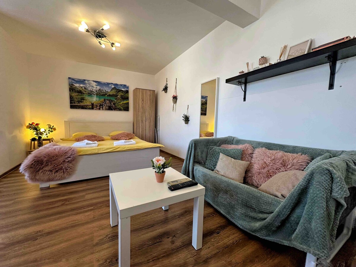 Modern estudi completament reformat, situat al cor de Bucarest, en un edifici d'entreguerres a prop de l'Ajuntament i els jardins de Cișmigiu, en una zona molt tranquil·la i segura. L'antic centre comença just davant de l'edifici on es troben l'Ajuntament, Cercul Militar i Calea Victoriei, així com tots els restaurants, pubs i atraccions que ofereix aquesta zona històrica de Bucarest. Ofereixo altres serveis addicionals: - Trasllat des de l'aeroport fins al pis. - Visita privada al castell de Drácula