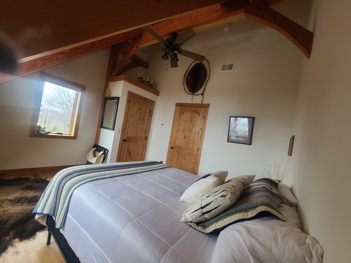 L'habitació de l'Steven té el seu nom perquè era el dormitori del nostre fill abans que ell se'n tirés pel seu compte, l'habitació està tallada amb terra de cendra negra i panells de fusta dura. L'habitació té un meravellós llit «king size» i un bany privat amb banyera d'hidromassatge/dutxa.