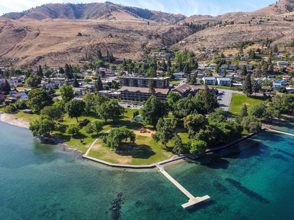 Unitat de planta superior, ningú per sobre de tu! Aquest apartament d'estil boutique privat recentment remodelat amb aire condicionat central és l'escapada perfecta per a 1-4 hostes. Situat al costat de Lakeside Park, a prop del cor de Chelan. Inclou aparcament gratuït, wifi ràpid, piscina comunitària i sauna, cuina i bany ben proveïts. Situat al centre, a només uns segons del llac, amb accés ràpid a vinyes, golf, pesca, esports aquàtics, senderisme, compres i molt més. Només necessites una nit? Envia'm un missatge per informar-me de la disponibilitat.