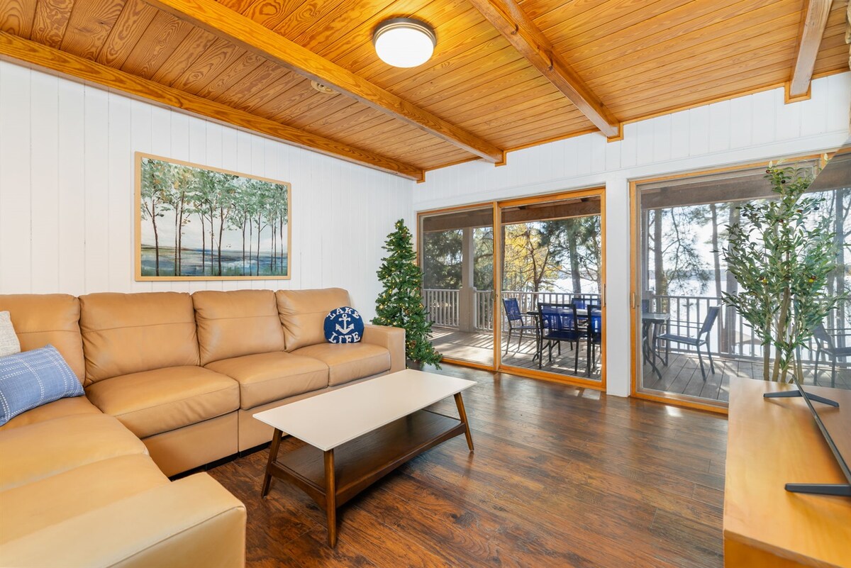 El paradís es troba a Wet Feet Retreat! Aquesta escapada a la vora del llac 4BR/4.5BA (king | King | Queen | Bunk Room) és moderna, espaiosa i divertida. Reuneix-te al porxo, a la nova coberta o a la sala d'entreteniment amb un bar, una estació de jocs, ping-pong, taula de billar, jocs de taula i molt més. Gaudeix de cornhole, bochas, foguera, pesca, 5 caiacs, SUP i molt més! Relaxa't, explora i crea records inoblidables.