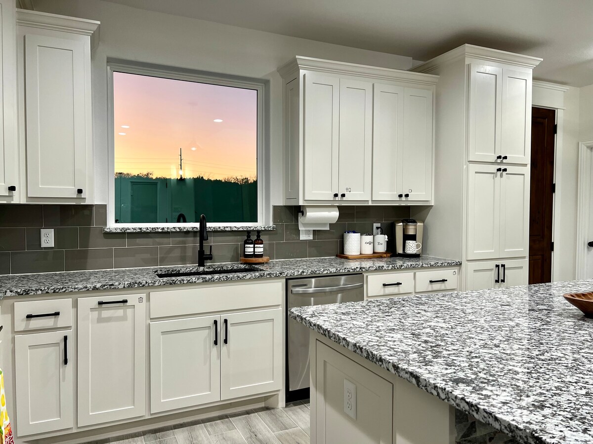 Escapa't a aquest refugi relaxant, elegant i apte per a animals de companyia en un barri de camp de golf a prop del llac Granbury. Gaudeix d'unes sortides de sol impressionants, de nits acollidores al costat de la foguera i d'un loft divertit. Situat a només 1,5 milles d'un llançament públic d'un vaixell, hi ha espai per aparcar el remolc del vaixell. Explora el centre històric de Granbury, ple de botigues, restaurants, cellers i entreteniment. Perfecte per a parelles, famílies o amics, aquesta escapada moderna combina comoditat, encant i comoditat. Reserva la teva estada avui!