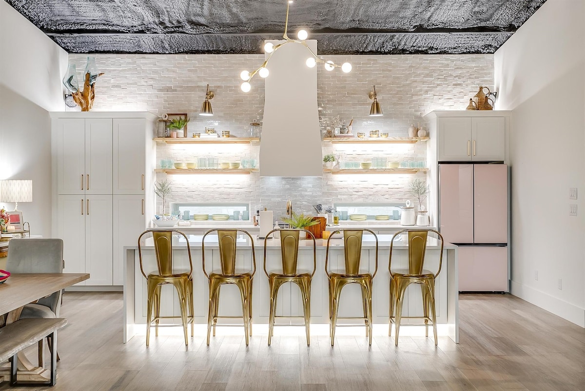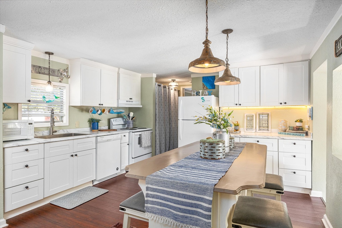 La Travis House és una casa preciosa just al costat de la plaça, al cor de Granbury. El dormitori principal disposa d’un llit «king». El segon dormitori també té un llit «king». El tercer dormitori té un llit «queen size». És un allotjament perfecte per a una escapada romàntica, un cap de setmana entre noies, etc. A només 2 minuts a peu d’establiments amb música en directe, restaurants, botigues i molt més! Ens encanta allotjar hostes i seria un honor que ens triessis per a la teva pròxima escapada!