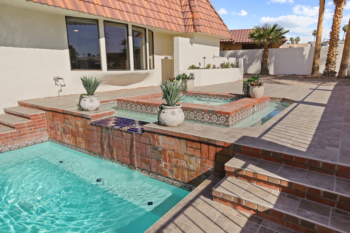 * Ambient ELEGANT DEL COMPLEX HOTELER DE CINC ESTRELLES * Aquest increïble somni bohemi de CINC dormitoris té vistes al camp de golf! A 1,5 milles de la NOVA RIVIERA MARINA! Ambient de complex turístic de luxe i modern!! Et sentiràs com si fossis en un complex privat amb piscina i spa climatitzat. No és el típic «lloguer»! Dissenyat per JG Interiors, es tracta d'un ambient d'HOTEL BOUTIQUE DE LUXE en una gran finca privada de 3500 peus quadrats. A minuts del llac i del centre de la ciutat! Aquesta és la millor ubicació de Havasu! (EDAT MÍNIMA DE 27 ANYS PER LLOGAR)