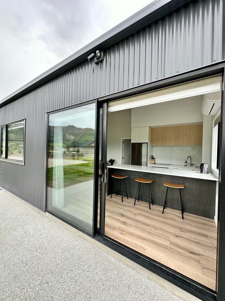 Located on a lifestyle block this private unit has everything you need and is only 5 minutes drive to Three Parks or 10 minutes into the heart of Wanaka. Location is between Wanaka and the airport, only a minute or two drive to the lavender farm. The unit is attached to our shed, it has 1 bedroom, bathroom and an open plan kitchen/dining/lounge with excellent indoor outdoor flow. Owned by a young family, please make sure you’re ok with hearing kids and sounds that come from a rural environment