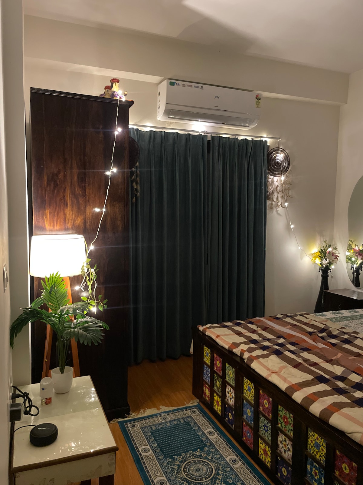 Un pis perfecte per relaxar-te, gaudir i treballar en pau. Aquest pis de disseny estètic combina l'elegància amb la comoditat, fent que la teva estada sigui productiva i plàcida. Wifi | Aire condicionat | Televisor | Estada de treball a distància | Cuina equipada amb estris. Situat en un lloc privilegiat, aquest pis ofereix un fàcil accés a destinacions turístiques, com ara Udaipur, Ranakpur, Nathdwara, Kumbhalgarh, Haldighati, Mt Abu, etc. Perfecte per a viatgers, professionals, parelles o executius remots que visiten la ciutat dels llacs d'Udaipur!