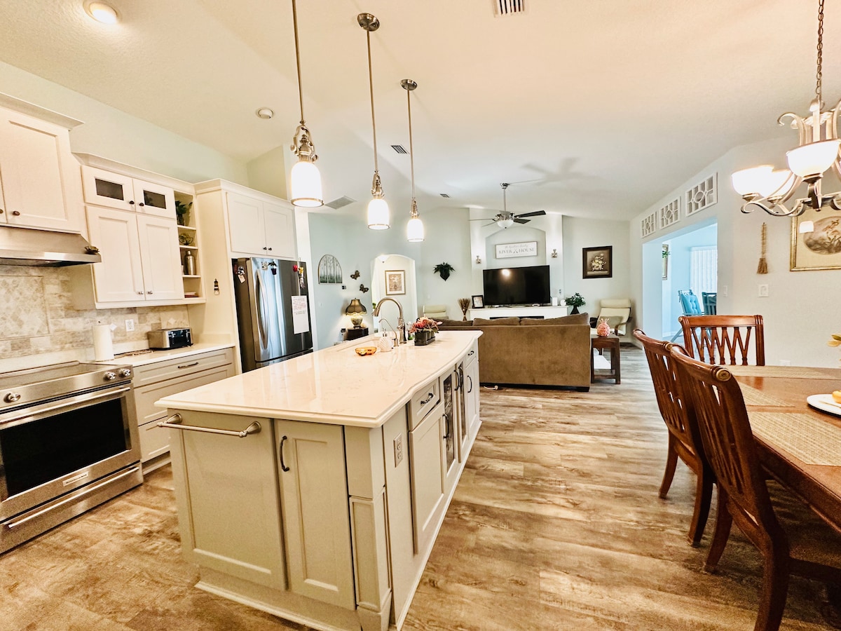 ✔ A poca distància en cotxe de Rainbow Springs Park i Crystal River, on pots nedar amb manatís ✔Gaudeix de la pesca o porta el teu vaixell al moll privat, amb fàcil accés a algunes de les vies fluvials més impressionants de Florida. ✔ Pati amb llar de foc, frisbee golf, graella i pati per a barbacoes al vespre sota les estrelles L'entrada ✔ sense claus, la connexió wifi ràpida, els televisors intel·ligents i Google Home Mini milloren la teva estada Llit «king size» ✔ ajustable amb massatges i ports USB ✔ Pack'n play, trona, banyera per a nadons, jocs de taula i molt més! Aparcament per a ✔ autocaravanes