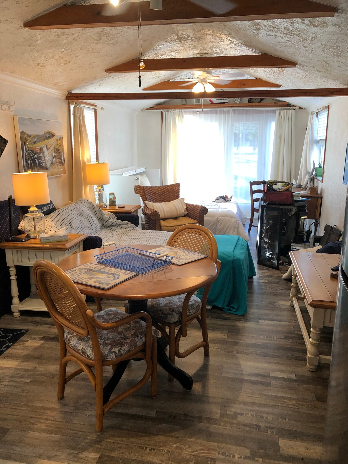 Aquest apartament annex situat a la planta baixa del meu allotjament ocupat es troba a pocs minuts d'Anápolis, a poques illes del riu Magothy. M'agrada convidar hostes a l'espai i m'enorgulleix tractar els nous amics com si fossin de la família. Vine a descansar els ossos cansats al teu refugi privat amb entrada independent, relaxant porxo i cuina petita. Entra a la nevera i gaudeix d'un refresc fred o d'una cervesa local. Asseu-te al voltant de la nostra llar de foc i relaxar-te. Instal·la't al bungalou Old Bay!