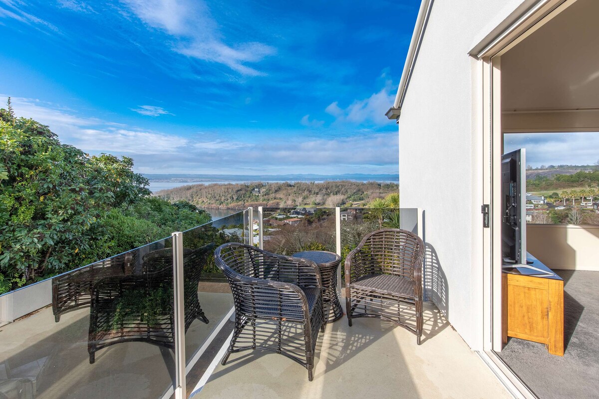 Ubicació màgica. Relaxa't i relaxa't. Tranquil·litat i serenitat a la bonica Hatepe. És perfecte tant per a l'hivern com per a l'estiu, a només 15 minuts de Taupo/Turangi i a 45 minuts de la muntanya. Pesca de truites, ciclisme de muntanya i senderisme. La nostra casa ofereix caiacs per a tota la família, bicicletes i tots els elements bàsics al costat del llac. Hi ha 2 zones d'estar separades i acollidores, 3 xemeneies i calefacció per terra radiant. La cuina té una de les millors vistes des de qualsevol lloc i amb menjador, ja sigui per dins o per fora, t'encantarà!