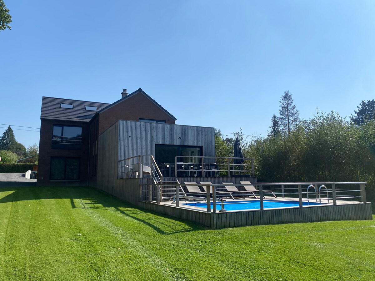 Vols celebrar una ocasió especial amb la teva parella en un entorn romàntic i privat? O només per passar uns dies per escapar de les ciutats agitades? Després vés a aquesta acollidora casa rural de fusta de nova construcció, equipada amb un gran jacuzzi (cobert), disponible durant tot l'any. La casa rural està amagada dels llocs d'interès, situada a prop del meravellós Ninglinspo a la vall d'Amblève, assegurant moltes rutes de senderisme a prop i un entorn meravellós al bell mig de les Ardenes belgues.