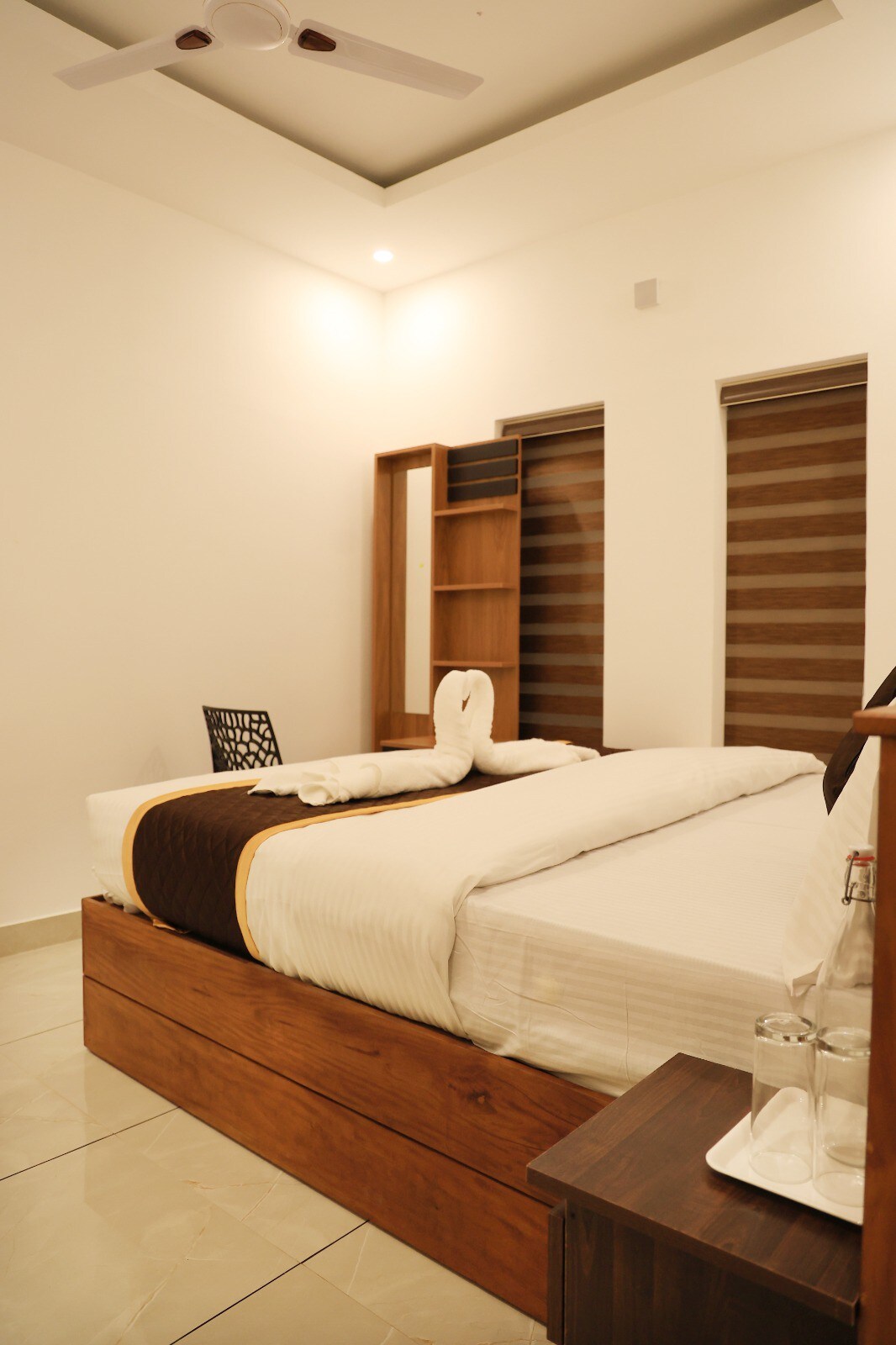 Acollidora caseta de fusta a Wayanad amb un llit «king size», un sofà i un balcó privat amb vista a la vegetació exuberant. Gaudeix d'un bany il·luminat amb llums LED amb dutxa d'efecte pluja, aigua calenta les 24 hores i una piscina infinita compartida amb vistes a la muntanya. Ideal per a parelles i famílies, la caseta combina l'encant rústic amb el confort modern. Inclou esmorzar, wifi i accés a les atraccions properes. Nens de 6 a 12 anys: 600 ₹; més de 12 anys: 1000 ₹. Piscina: 8:30-19:00, sortida: 11:00.
