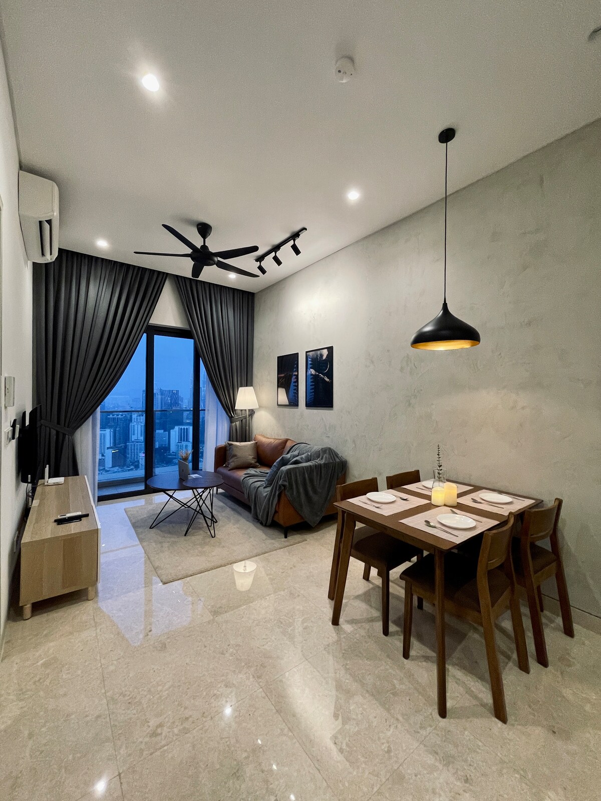 Aquest apartament 1 Br té una vista impressionant de l'horitzó de KL. Disposa d'un sofà sala d'estar de 3 places, taula de menjador, cuina, escriptori i un gran balcó davant de la Torre KL i les Torres Bessones Petronas. Inclou un televisor de 55", WIFI d'alta velocitat i un llit« queen size »que et pot allotjar còmodament. *L'altra unitat d'aquest apartament de doble clau és un estudi compacte amb llit de matrimoni, rebost, bany i bany. Pot encaixar amb els amics que viatgen amb tu amb privacitat. Et donem la benvinguda per demanar-nos més informació!