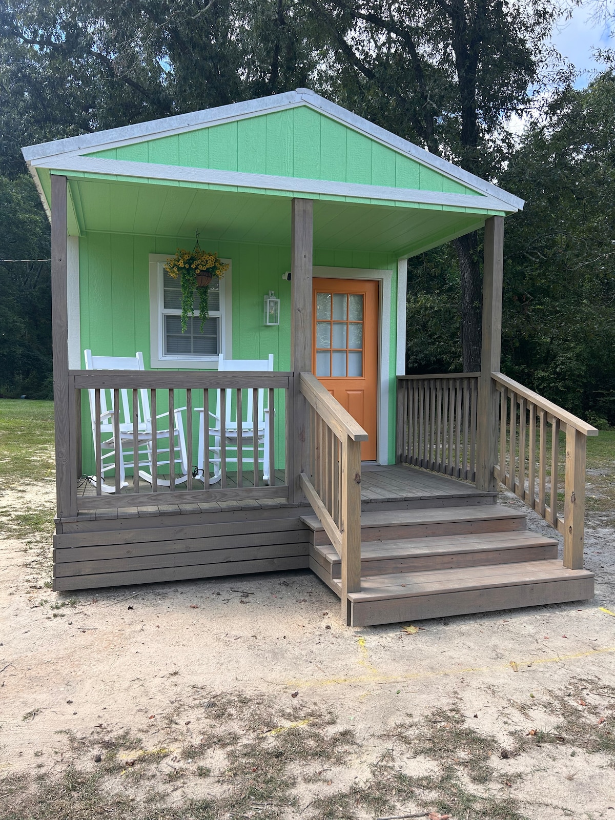 Tranquil·litza't en aquesta escapada única i tranquil·la. Passa la tarda pescant les ribes del riu del Bouie, barrejant el banc de sorra per veure les puntes de fletxa o un dia amb la família al banc de sorra. Et sentiràs com a milions de quilòmetres de tot en aquestes cases rurals acabades de completar, però encara estem ubicats al cor de Hattiesburg. Passa el dia relaxant-te sota el dosel d'arbres al pati de Silo o al teu propi balcó amb vistes al riu. També oferim lloguer de caiacs per un suplement.