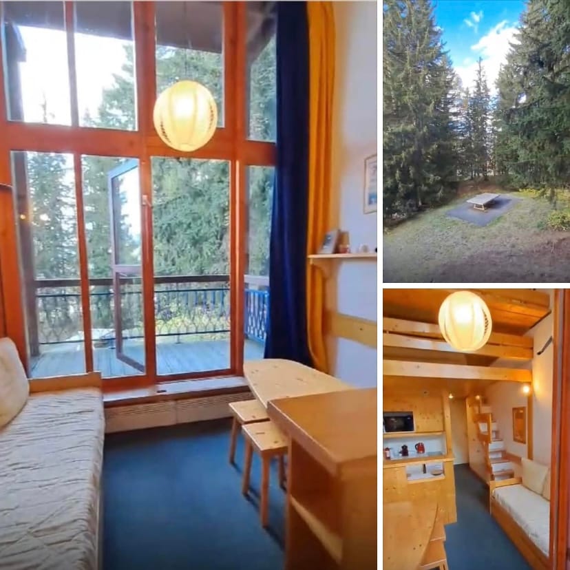 Bel appartement,résidence Archeboc, PAS DE ROUTE A TRAVERSER POUR REJOINDRE LES PISTES, 2ème étage avec balcon, orienté SSO : 1 pièce principale avec kitchenette toute équipée, salle de bain Charlotte Perriand avec WC. A l'étage, hauteur sous plafond: 1.80m, 1 chambre avec lit 140, 1 chambre avec 1 canapé lit 140 et 2 lits superposés, nombreux rangements, tout confort. Aucun linge n'est fourni (maison, toilette, cuisine) Réduction sur la location du matériel de ski: me solliciter