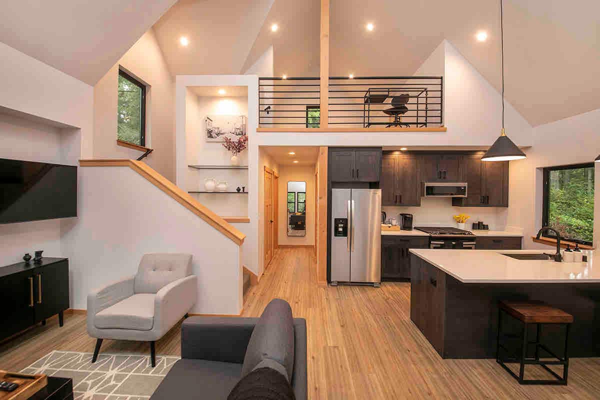 Et donem la benvinguda a The Studio, una minicasa situada al bosc de la preciosa Whidbey Island. Amb fusta personalitzada i motllures fresades d'arbres del lloc, la caseta plena d'art inclou un llit doble al loft (al qual s'accedeix a través d'una escala de caracol una mica difícil), una cuina americana ben equipada i wifi amb accés a internet d'alta velocitat. Situat en cinc hectàrees de bosc a set minuts de la pintoresca Langley, és un santuari construït amb cura per a tu!
