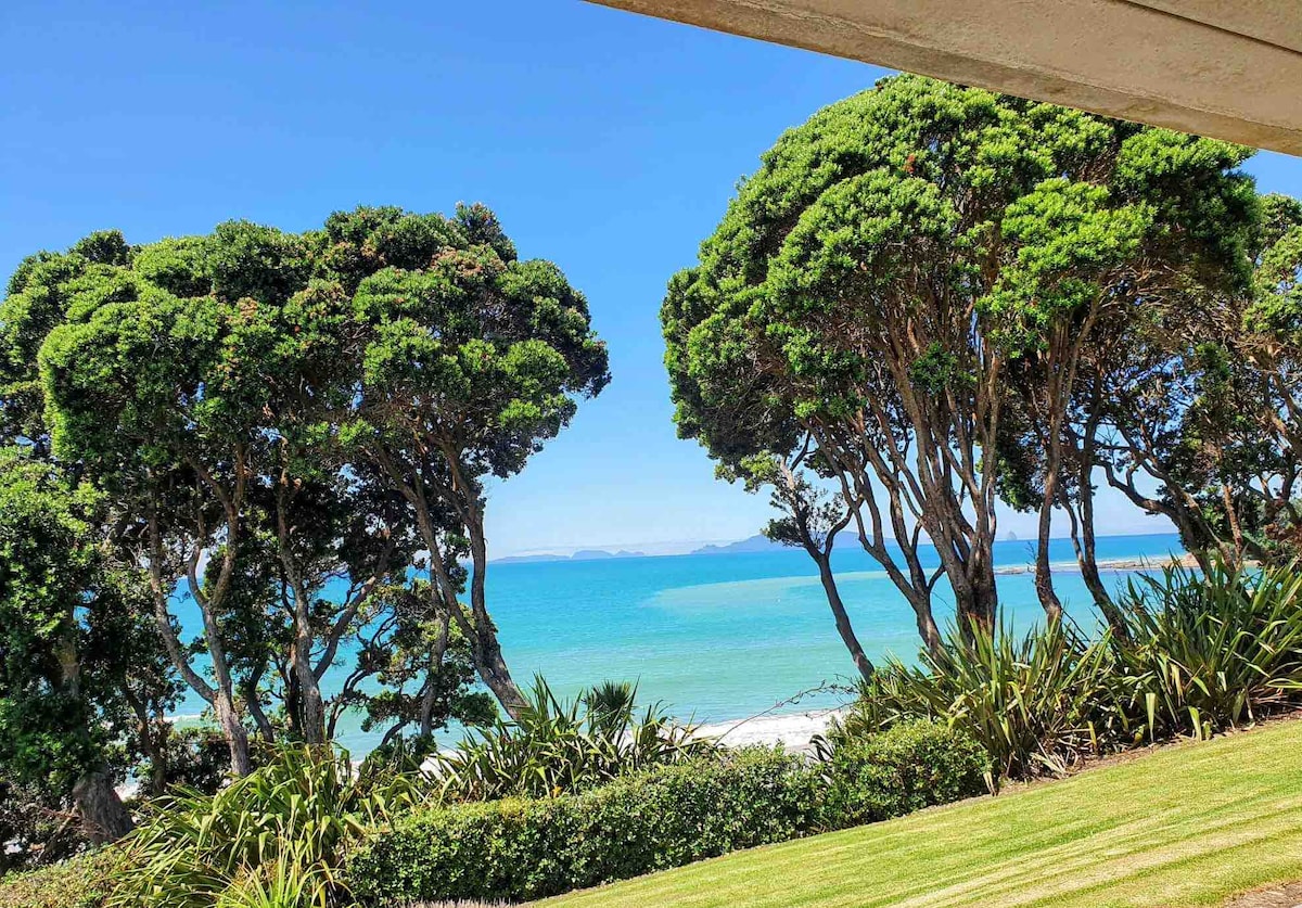 Per a grups de més de 4 adults, fes clic a Posa't en contacte amb l'amfitrió per sol·licitar-ho primer. Aquesta moderna i assolellada casa de platja té unes vistes amplies de la platja de Langs fins a Whangarei Heads bellament emmarcada per grans pohutakawas. Una gran sala d'estar oberta amb terme plegat i cobertes ofereix un gran flux interior/exterior i accés a les vistes allà on t'asseguis. Per als seients de primera fila, les cadires exteriors són un lloc fantàstic per prendre un cafè al matí o per prendre begudes al final del dia. La roba de llit està inclosa a les tarifes