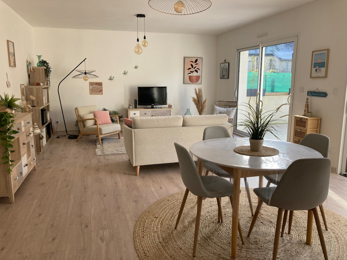 Casa adossada encantadora completament renovada, amb terrassa orientada al sud i jardí emmurallat, tranquil·la en un petit carreró sense sortida. A un pas de l'estació de tren (París Montparnasse en 2 hores i 15 minuts) i a 10 minuts amb cotxe de la primera platja. Ideal per a una escala de feina o una estada relaxant, pots gaudir d'un entorn tranquil mentre t'allotges a prop del centre i del transport. Al pati segur pots guardar les bicicletes (de lloguer a l'estació) amb tranquil·litat 🚲