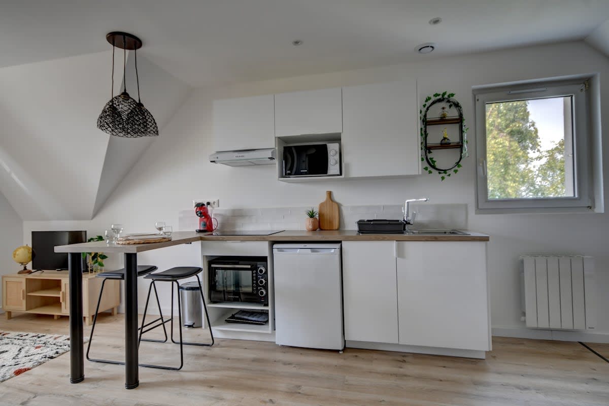 Gaudeix d'una estada tranquil·la a l'estudi Enez, situat al cor de la badia de Saint-Brieuc. Ideal per a viatges de feina i hostes. A 2 minuts a peu de la zona comercial, a 5 minuts en cotxe de les vagues de Langueux (camí GR i reserva natural de la badia) i a 10 minuts de les platges i del port de Le Légué. Tarifa per a 2 persones. Hi poden allotjar fins a 4 persones (2 adults + 2 nens) amb un càrrec addicional. Informació sobre el preu a la secció Altres dades Estarem encantats de rebre't!