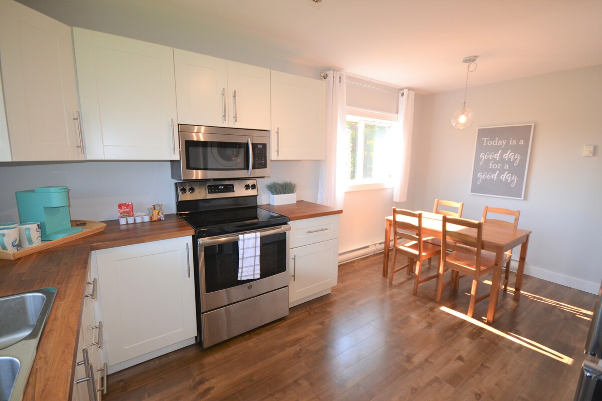 Una suite rural relaxant d'1 dormitori amb capacitat per allotjar-se més amb un sofà llit i un ampli espai. A 15 minuts de l'aeroport, el nostre tranquil entorn rural és un lloc fantàstic per descansar abans o després d'un vol, utilitzar com a base per a aventures d'un dia, com ara fer senderisme per rutes locals o anar de compres a prop de Dartmouth(25 minuts)/Halifax(30-40 minuts). Allà on et porti la teva aventura, un lloc càlid i acollidor per començar i acabar-la, t'espera aquí. Tingues en compte que no està permès fumar a l'allotjament.