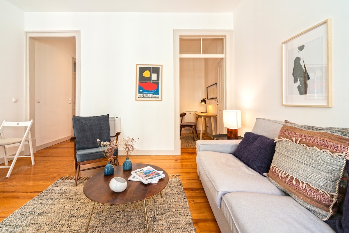 - Apartament amb personalitat única, dissenyat per a PERSONES TRANQUIL·LES, que volen gaudir de la llum de Lisboa, en un ambient acollidor i de bona energia 💛 - Situat en un districte de dalt (la majoria d'ambaixades). - Espai natural especial al pati del darrere, amb vista oberta 💚 - Dues estacions de treball totalment equipades + Internet ràpid (<500 Mbps) + ports USB a totes les habitacions + cable USB/energia per al balcó - Climatització potent / Sistemes de calefacció moderns / Calefacció exterior i mantes - Si estàs cansat, recupera't i relaxa't en una cadira de massatge professional 💖