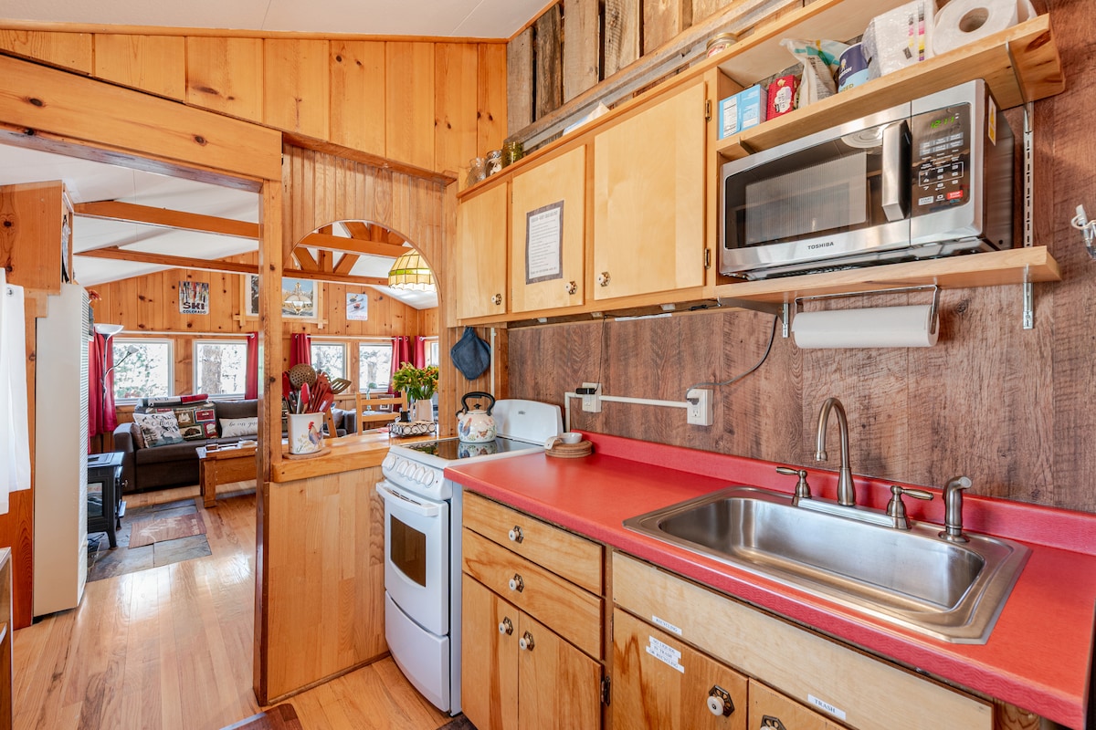 Reg #3261. La nostra petita caseta vermella es va construir el 1915, es va millorar als anys 50 i es va ampliar en els anys 70, adquirint un encant peculiar de muntanya al llarg dels anys. La caseta es troba en un terreny tranquil en un barri residencial a uns 1,5 quilòmetres al sud del centre de la ciutat i del llac Estes. (Sense aire condicionat, sense animals de companyia). Amb un dormitori gran, un bany complet, una cuina petita, capacitat per a 2 hostes addicionals en espais compartits, rentadora/assecadora i una gran vista de la fauna salvatge, aquesta caseta rústica és perfecta per a unes vacances a Estes Park. Wifi de fibra òptica i ROKU TV