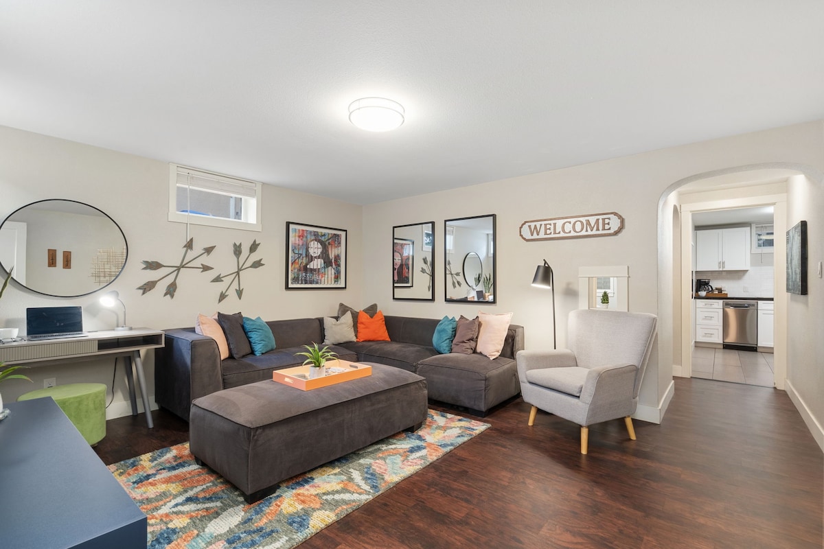 Estudi gran únic a la planta del jardí amb fogons de llenya. El fogó de llenya dóna al còmode llit «queen size». Un sofà de dues places amb otomana i un munt de mantes davant d'un televisor intel·ligent. Introdueix les dades del teu compte per veure'l. Disposa d'un bany de 3/4 (amb dutxa) amb tota la roba de bany. Escriptori de treball i cadira. Taula de menjador per a dos al costat de la cuina. Hi ha cafè i te. S'encoratgen les estades llargues, les dates només es bloquegen per a possibles llogaters a llarg termini. A 1 hora en cotxe del RMNP.