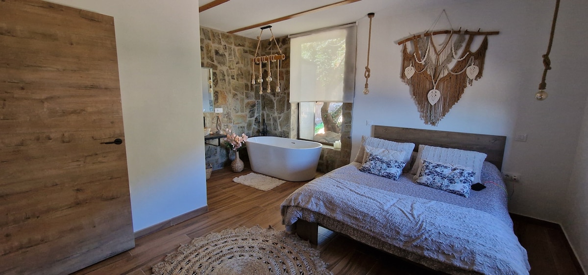 El Refugio: bungalou Delia, sauna, piscina climatitzada