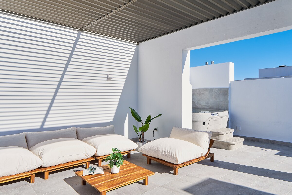 Aquest àtic és una casa de vacances de luxe ideal, situada a la segona línia de la platja de la zona de Playamar, un lloc molt tranquil envoltat d'amples bulevards, natura i barri en harmonia, perfecte per relaxar-se. També està disponible de novembre a març durant mesos complets: 2600 € aprox./4 setmanes (novembre i desembre) 2800 € aprox./4 setmanes (gener, febrer de març), totes les despeses incloses. O per nit 250 €. Tarifa d'Airbnb no inclosa