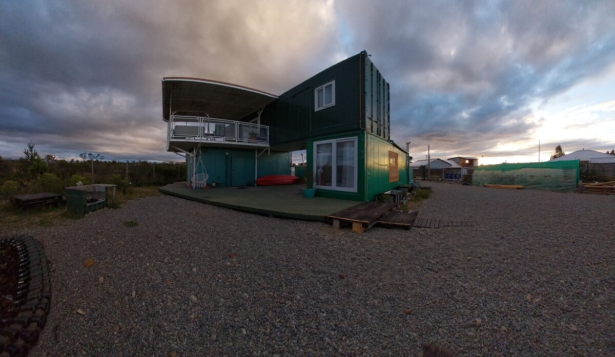 Relaxa't en aquest espai tranquil i acollidor, a 7 minuts del centre de Puerto Varas en vehicle. Situat en un complex privat i una parcel·la compartida a només 30 minuts de l'aeroport. Té tot el que necessites per gaudir d'un descans agradable. L'hora d'arribada és de 15:00 a 17:00 i l'hora de sortida és a les 11:00. Tenim dos gossos, un es diu Alma i l'altre Aura, sempre estan caminant pel pati, però són ben educats.