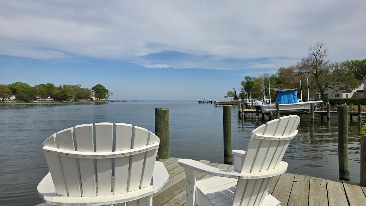 Gaudeix d'aquest apartament privat a primera línia de mar amb una vista preciosa de la badia de Chesapeake. És una escapada perfecta per a qualsevol persona que busqui descansar i relaxar-se en una ubicació tranquil·la i impressionant. Gaudeix de la piscina, pesca fora del punt, asseu-te al voltant d'un foc de gas al vespre, visita qualsevol de les platges de sorra locals o simplement veient impressionants postes de sol des d'un pati privat. Aparcament ampli, wifi, televisió, accés a la rampa per a vaixells. Una mascota és benvinguda.