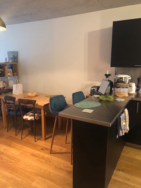Lumineux appartement de 70 m² avec une terrasse d'exception de 80 m² — transats, barbecue, table pour 8 personnes, verdure généreuse et aucun vis-à-vis pour une totale intimité. 1 chambre avec salle de bain en suite, vaste séjour-salle à manger, canapé-lit, espace bureau et WC séparés. Idéalement situé : métro à 2 min (gare en 15 min), accès autoroute à 2 min vers Montreux et les Alpes Suisses. Place de parking incluse.