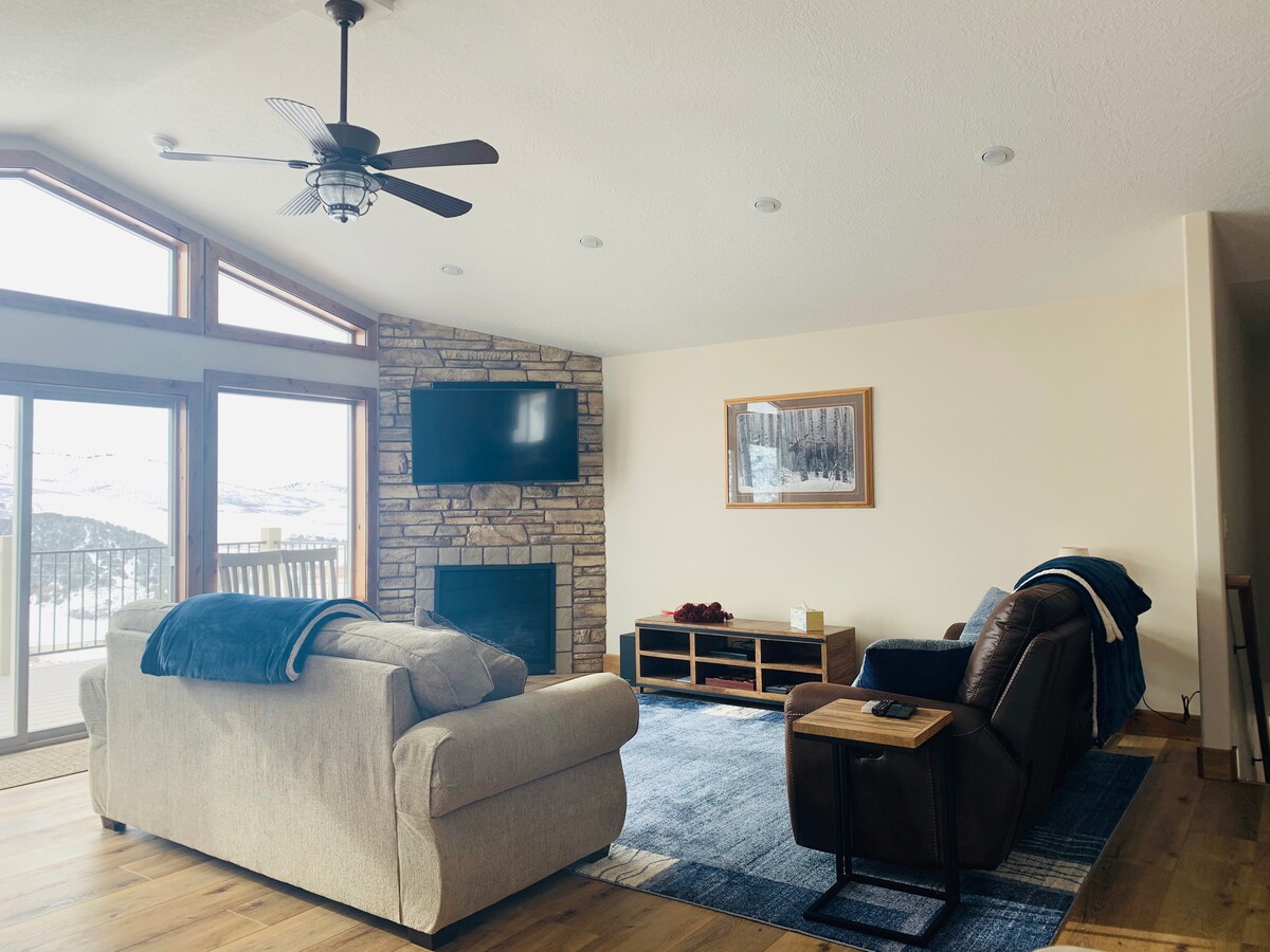 Relaxa't en aquesta casa tranquil·la i rústica. El seu disseny romàntic és perfecte per a qualsevol escapada especial. El terreny es troba a la part superior d'un turó i està recolzat contra la terra de BLM. Tens les millors vistes de la ciutat i senders per caminar o anar en bicicleta per la porta principal. Hi ha un espai d'oficina per treballar a distància i una sala de teatre al soterrani. Estem a 3 minuts de la via gratuïta i a 2 de l'hospital. Aigües termals de lava: a 25 minuts, esquí: a 15 minuts, Yellowstone: a 2,5 hores.