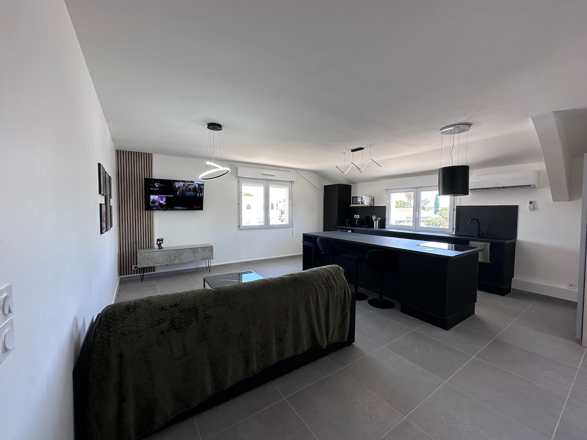 Cocon Nature Montpellier ® (@ lecoconnature) és una magnífica suite de 5 estrelles de 43 m2 que hem dissenyat i construït totalment. Hem pensat en portar-te el màxim benestar amb la seva terrassa exterior de 30 m2, spa de 5 places i sauna tradicional. Es troba a: -> A 300 metres del tramvia. - A > 15 minuts del centre de Montpeller en tramvia / 5-10 minuts d'aparcament Comédie en cotxe -> 10 minuts a peu del centre de Castelnau-le-Lez -> A 15 minuts en cotxe de les platges.