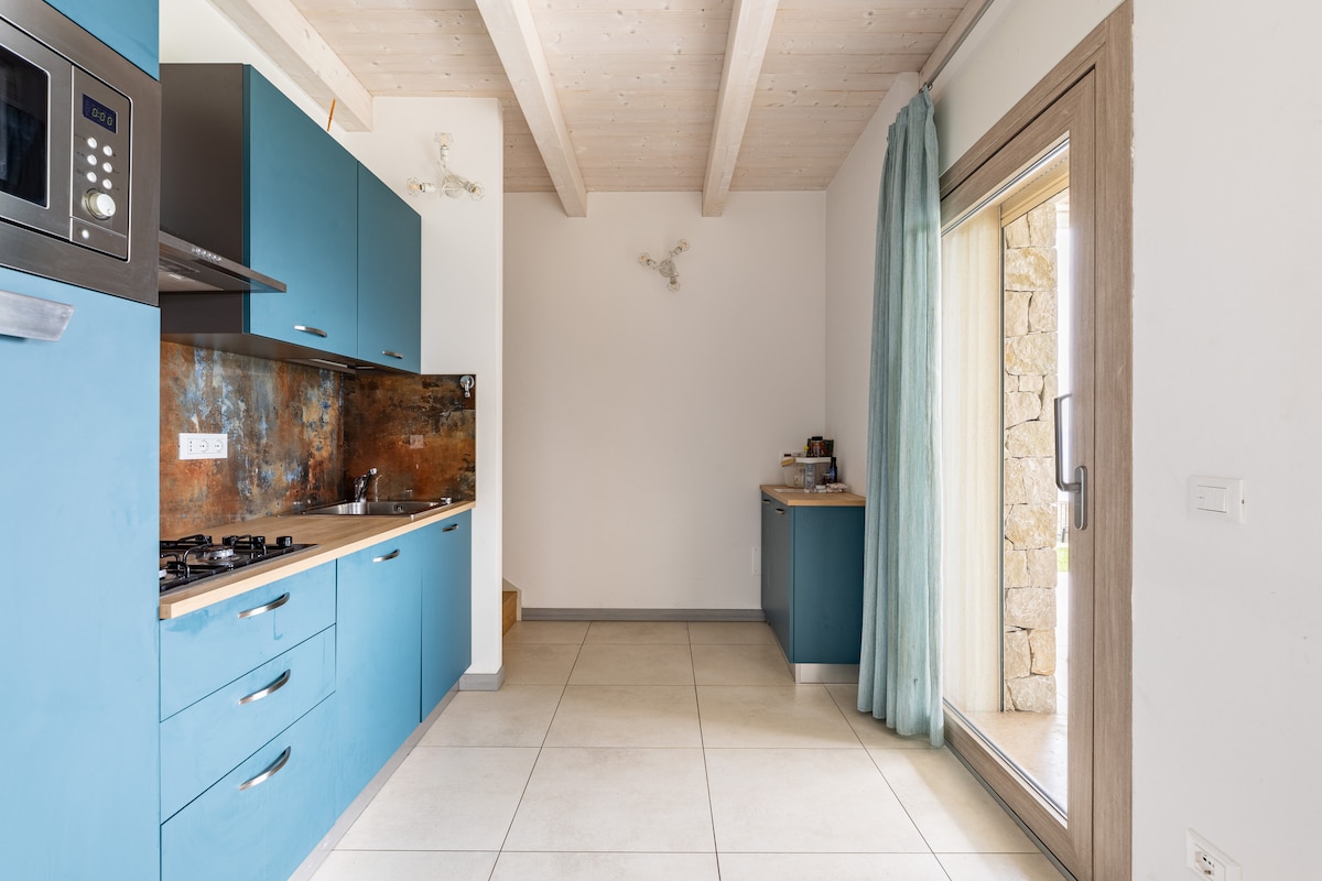 Apartament modern de nova construcció equipat amb totes les comoditats. Situat en dos nivells, ofereix una vista preciosa del llac de Garda. Habitació doble, habitació individual, sofà llit. Unitat única immersa en la verdor de la Residència Asiàtica. A pocs passos del centre històric de l'Albisano i a cinc quilòmetres de Torri del Benaco i Garda.