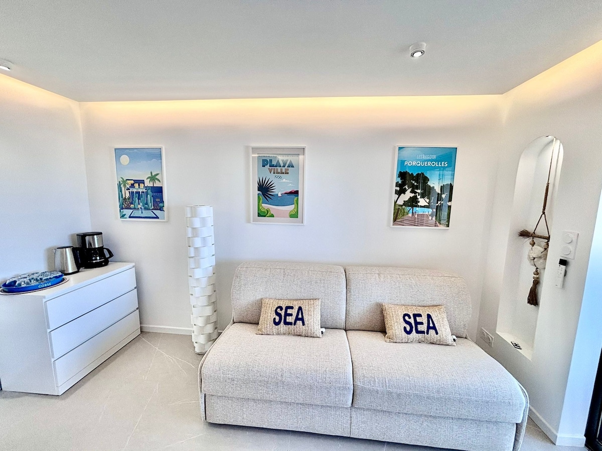 🫶 Relaxa't en un lloc màgic on el so de les onades es troba amb les cançons dels rossinyols.☀️ La residència acaba on comença el mar... Enmig d'un bosc de pins provençals, la teva mirada quedarà captivada pels tons de l'atzur. Dúplex espaiós i lluminós amb un estil romàntic 💕 i unes postes de sol impressionants🌅. A només 5 minuts a peu per la ruta costanera hi ha una cala salvatge🐠🏖️. Descobreix la Costa Blava, les seves platges immaculades i el seu autèntic costat salvatge🌿🚴♂️.
