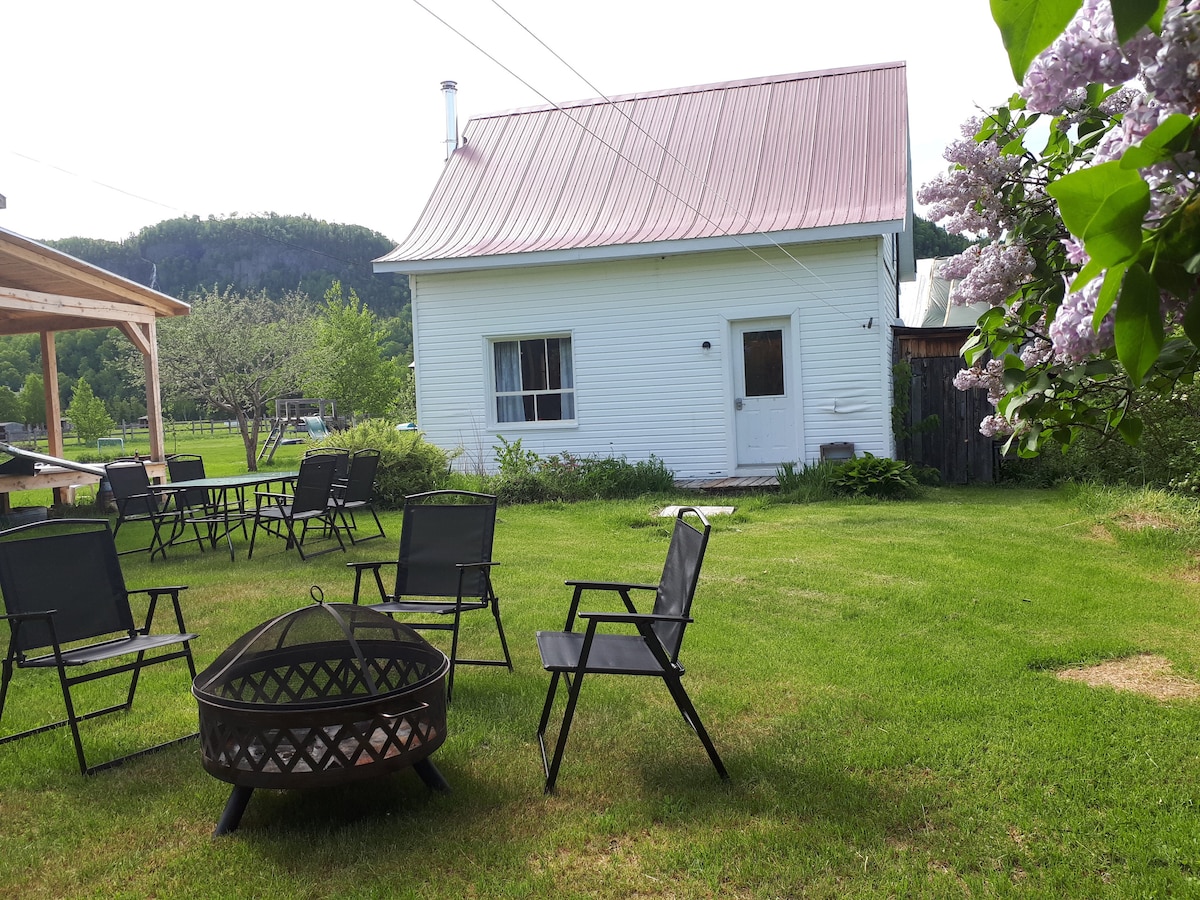 Al cor del Parc Nacional del Fiord Saguenay, la petita casa no podia estar millor situada : a 5 minuts a peu del fiord, el riu, el poble, el carril bici i el camí de la Muntanya Blanca! Estaràs just al costat de la llar familiar, en un gran terreny herbós on els nens es poden divertir amb total llibertat. També trobaràs la teva privadesa gràcies a una zona privada a l'aire lliure, amoblada per als àpats i equipada amb una llar de foc per a les nits al voltant del foc.