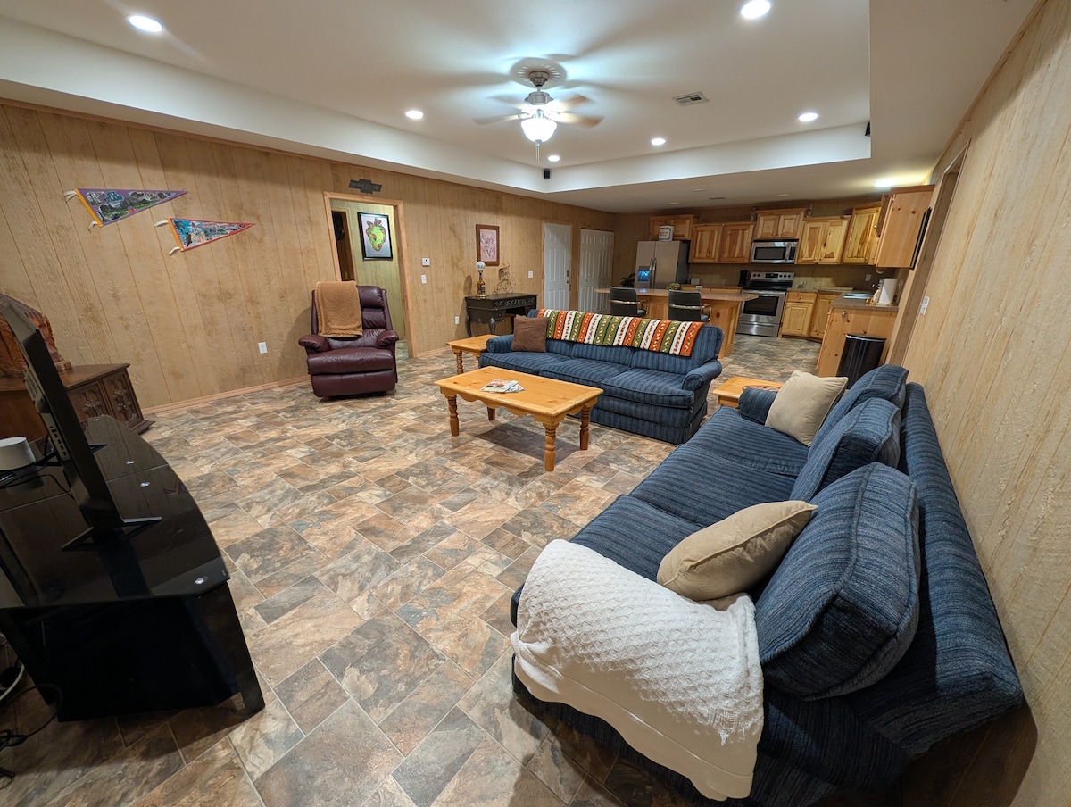 Molt d’aparcament: s’hi accepten remolcs, vaixells i carros de golf! Hi ha opcions de connexió a la xarxa elèctrica o de presa de corrent disponibles a petició. Aquest allotjament és únic: un habitatge dins d'un gran edifici de botiga de metall! Wifi superràpid, net com una patena i molt espai per estirar-se. Al bell mig de Poteau, restaurants i cafeteries a poca distància a peu. T'encantarà «Grandma's Basement Vibes»!