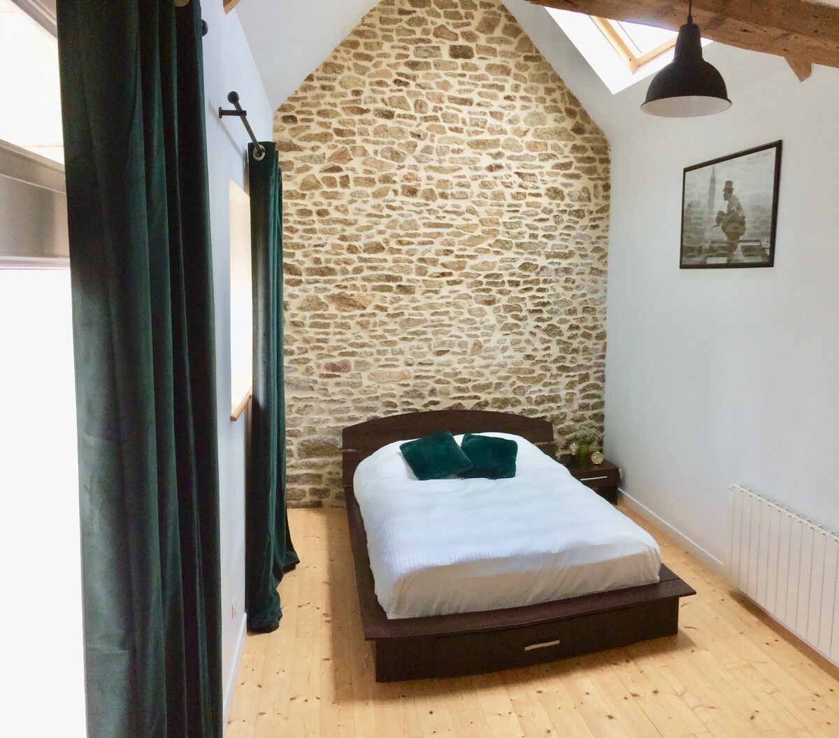 Vine a escapar amb la teva altra meitat a la nostra encantadora casa rural per als amants, decorada amb elegància i totalment privatitzada amb una entrada independent. Està equipat amb totes les comoditats modernes, amb un llit king size, una banyera d'hidromassatge privada, una cuina completa i una zona de relax. Assegura't al costat del foc per a les nits romàntiques d'hivern, a l'estiu també pots gaudir d'una terrassa gran. Situat a 1 km de Quintin, el tercer poble preferit dels francesos el 2022 i a 15 minuts del mar.