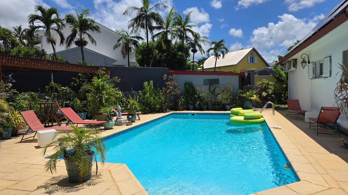 Etwas oberhalb von Etang-Salé, zwischen Zuckerrohrfeldern und kreolischen Nachbarn, liegt dieses neue Haus im marokkanischen und balinesischen Stil. Vom großen Pool über einen tropischen Garten mit mehr als 10 verschiedenen Palmen und mehreren Sonnenterrassen bis hin zur hochwertigen Einbauküche ist alles vorhanden, was den Urlaub angenehm macht. Nach 30 Jahren Großstadtleben am Berliner Kurfürstendamm haben wir hier einen Ort für alle Sinne geschaffen.