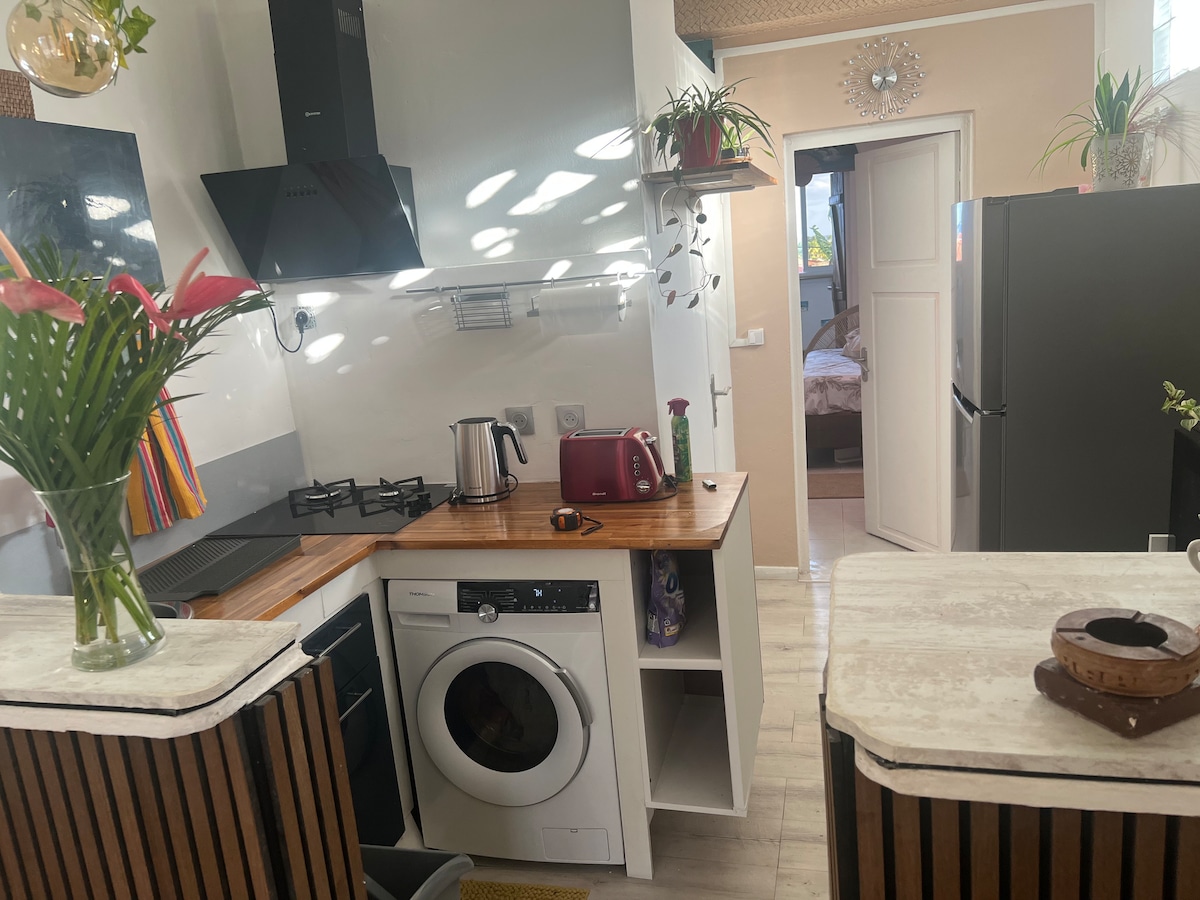 Estudi en un lloc tranquil al cor d'un paisatge arborescent. Molt ben situat a Le Gosier, al centre de l'illa. A prop de platges, kitesurf, surf i windsurf. Cuina equipada, dutxa, aigües i bugaderia. Climatització tranquil·la. Accés gratuït a la wifi. Entrada privada i accés a l'aparcament.
