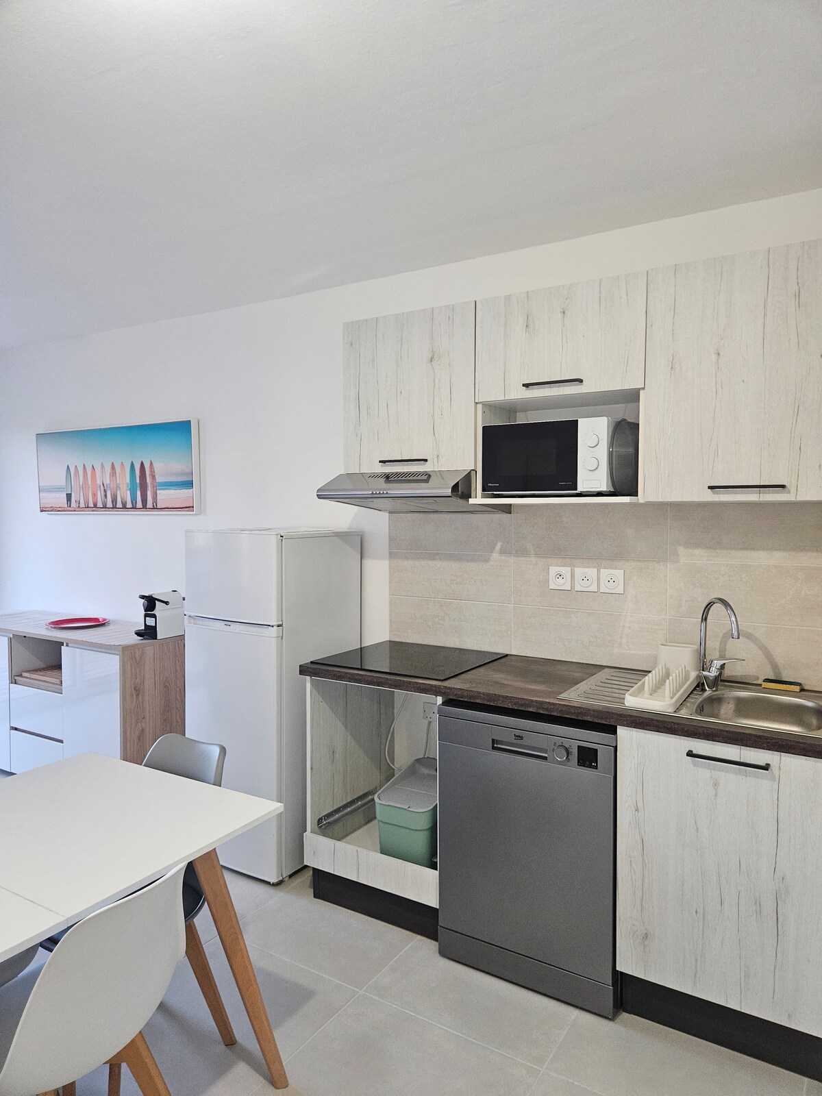 Deixa't captivar per aquest allotjament ben situat amb accés directe a la platja. La residència està tancada i tens la teva plaça d'aparcament. Pis totalment renovat a principis del 2025, perfecte per a un màxim de quatre persones: dormitori equipat amb un llit de 140 cm i un sofà llit a la sala d'estar. Cuina totalment equipada: forn, microones, rentavaixelles. Aire condicionat Internet Rentadora A prop del poble, pots caminar fins a les botigues i al mercat.