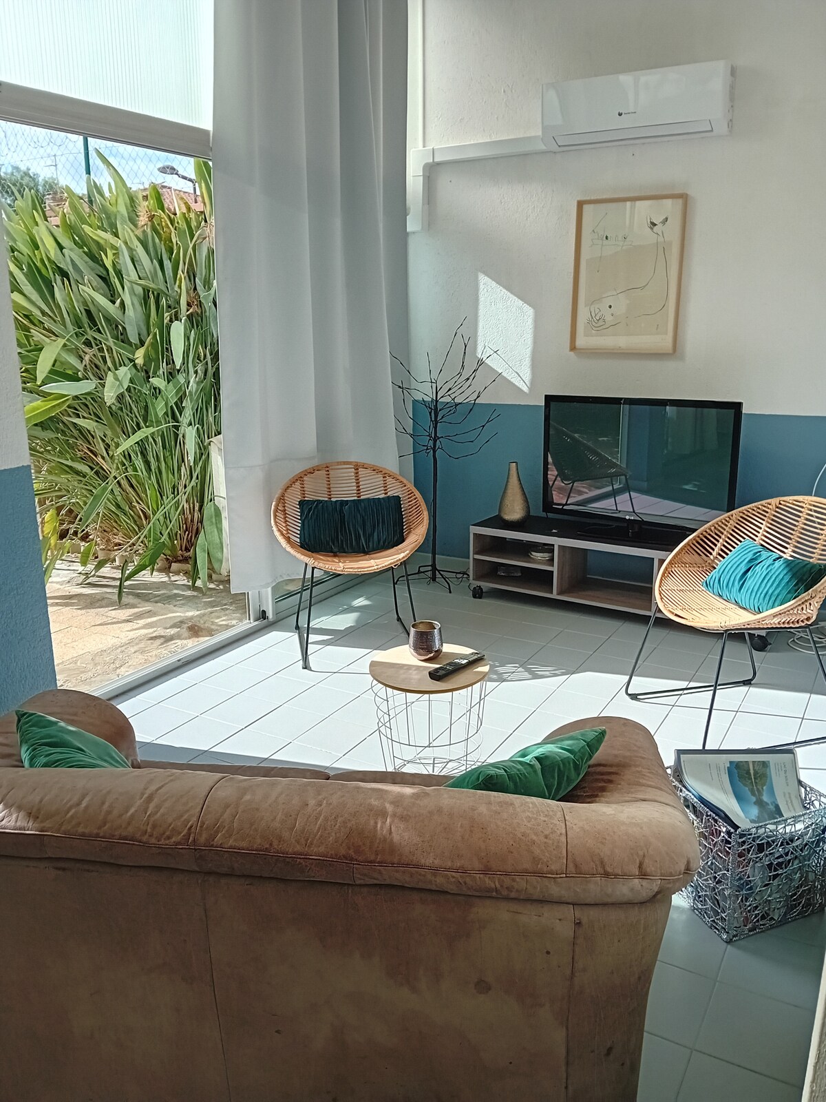 PLATGES a 25 minuts d'ESPANYA A 35 minuts. Centre de Perpinyà a 10 minuts botigues i restaurants a peu Bonica i còmoda per a 2 persones amb terrassa privada aparcament gratuït a prop Molt bona comoditat! AIRE CONDICIONAT/ wifi inclòs - Cuina equipada (forn/campana extractora/nevera-congelador/estufa vitro/microones/cafetera/plats. - Dutxa (caseta/vàter/rentadora) - 2 llits de 90x190 (base de llits de llistons/matalàs de comoditat) Llits de recepció fets. - Terrassa