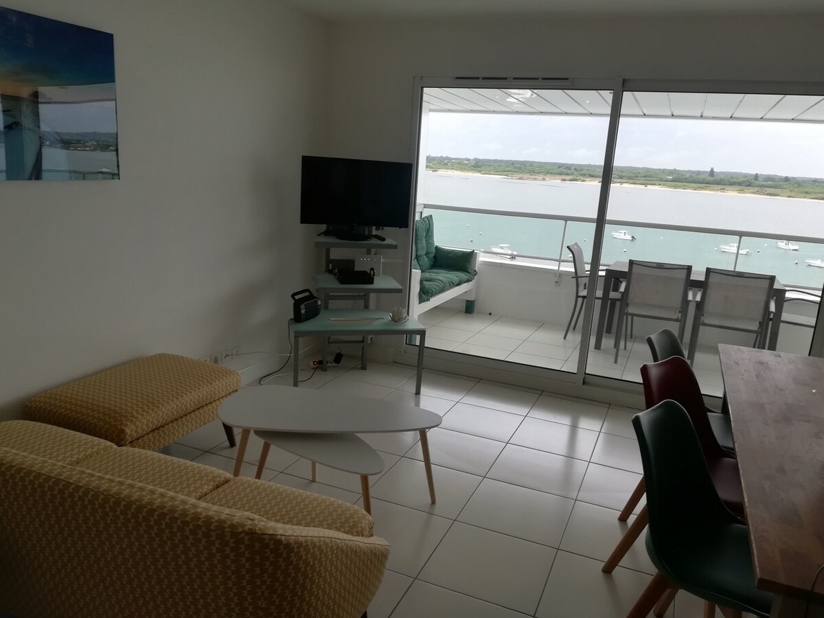 Preciós estudi en primera línia, amb vistes espectaculars de la conca de l'Arcachon, acabat de renovar, al centre de la ciutat d'Arcachon. Ideal per a tres persones, es troba a la 4a i última planta d'una tranquil·la residència amb ascensor. Els avantatges : Gran i agradable balcó amb vista a la piscina, accés directe a la platja, plaça d'aparcament privada, la ciutat a peu, una pista de tennis. Dormitoris : Llit real per a l'armari, un llit individual en una habitació independent. Juliol/Agost : Lloguer setmanal, arribada el dissabte.
