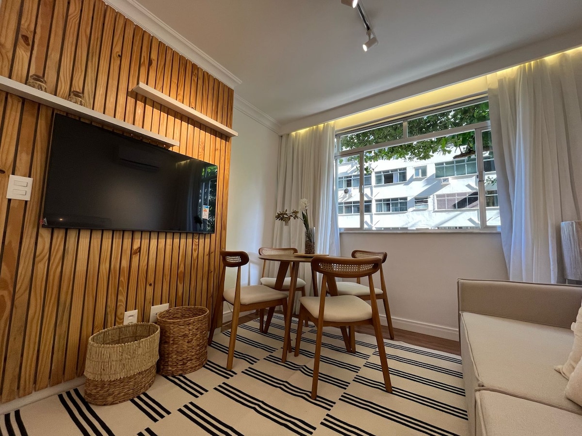 El pis estava totalment reformat, està situat al millor barri de Rio, a només una illa de la platja, a una illa del centre comercial, a prop de teather, restaurants, estació de metro, estació de bicicletes. En un edifici molt fresc dels anys 60, amb la cara és històricament patrimoni, a l'interior, la planta es va canviar completament per tal d'oferir espais oberts i integrats, molta llum natural. Amb mobles de bona qualitat, electrodomèstics nous, llençols i tovalloles de cotó de qualitat. 100% LGBTTQIA+ friendly