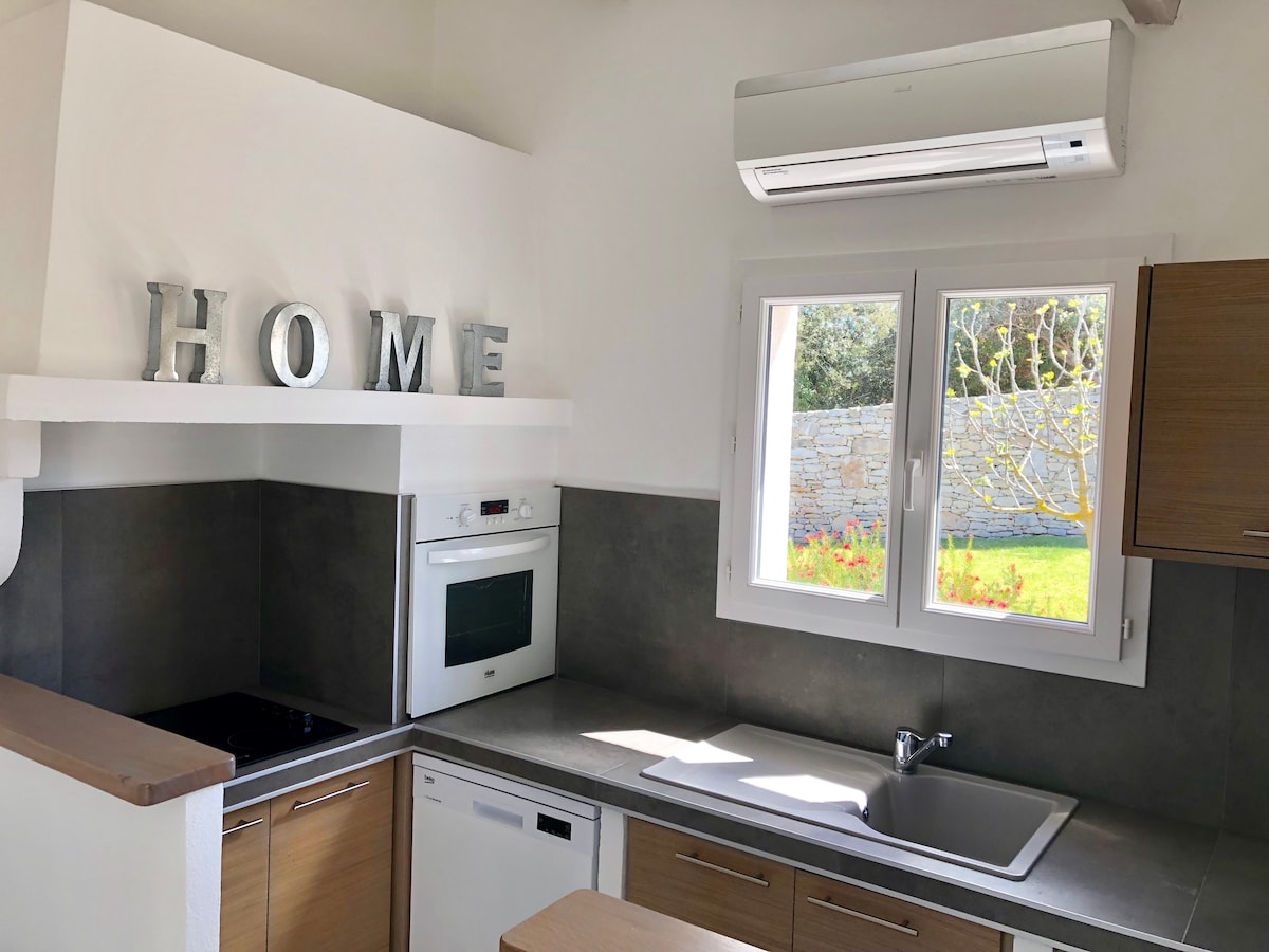 Encantadora vil·la amb aire condicionat de 70 m2 en dos nivells. Ideal per a 4 persones. - Port de Bonifacio a 6 km - Platja de Canetto a 3 km - Aeroport de Figari a 23 km - Dormitori de dalt amb 160 llits - Gran sala d'estar amb sofà llit - Cuina totalment equipada (nevera, congelador, placa d'inducció, forn, torradora, torradora, cafetera, cafetera, bullidor, bullidor, rentaplats, rentadora) - Dutxa, 2 lavabos i 2 lavabos. - Pati exterior amb una àmplia terrassa de 55 m2 (planxa, gandules, dutxa)