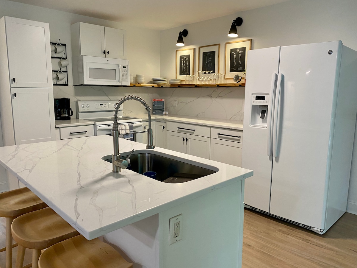 La teva estada comença en una encantadora casa de 1931 que va ser propietat d'un alcalde de Sanford, ara renovada per oferir comoditat i connexió. Amb 4 dormitoris, 2 llits «king size» i 2 sales d'estar, hi ha espai per a famílies o grups. Prepara àpats a la cuina completa, mira programes a la televisió intel·ligent i gaudeix del pati privat tancat per a animals de companyia companyia o per relaxar-te a l'aire lliure. Aquest allotjament, situat a prop de botigues i de les rutes més importants, combina l'estil vintage amb la comoditat moderna per fer-te sentir com a casa.